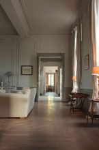 De bovenverdieping beschikt over twee bijkomende suites met sanitair, geplaatst aan beide uiteinden van het kasteel en verbonden via de centrale zolderzone.